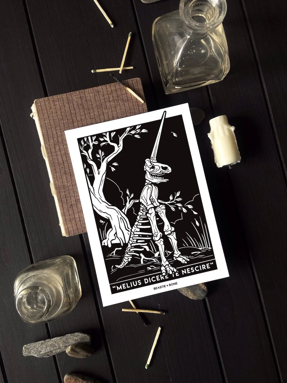 Welcome, Patron, to your exclusive shop! Only you and your fellow Beastie and Bone Patreon members have access to these special print designs. Your early access to all new goods and originals will also be posted here before being added to the general Beastie and Bone online shop, as well.