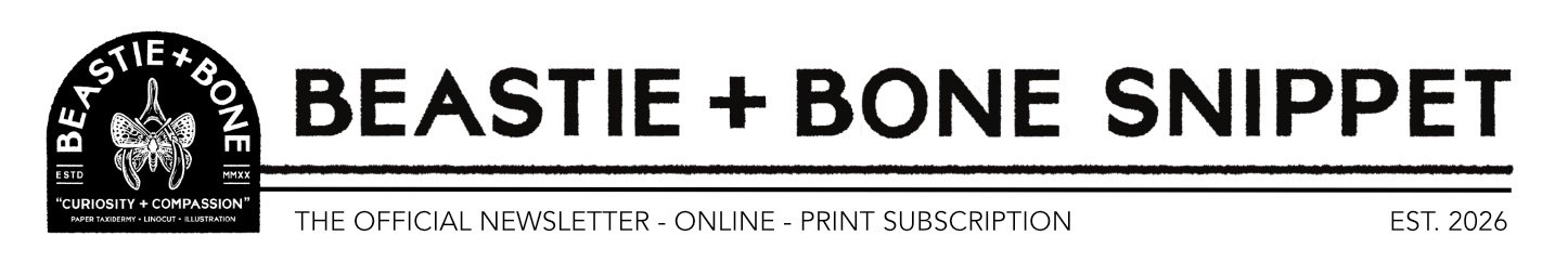 The Snippet will be launching soon, with the first print edition shipping out at the end of February and the digital version going live on February 27th. Sign up for the print version via the Beastie and Bone Happy Mail Club or select Beastie and Bone Patreon Tiers, or add your email below to receive the free digital version via this blog!